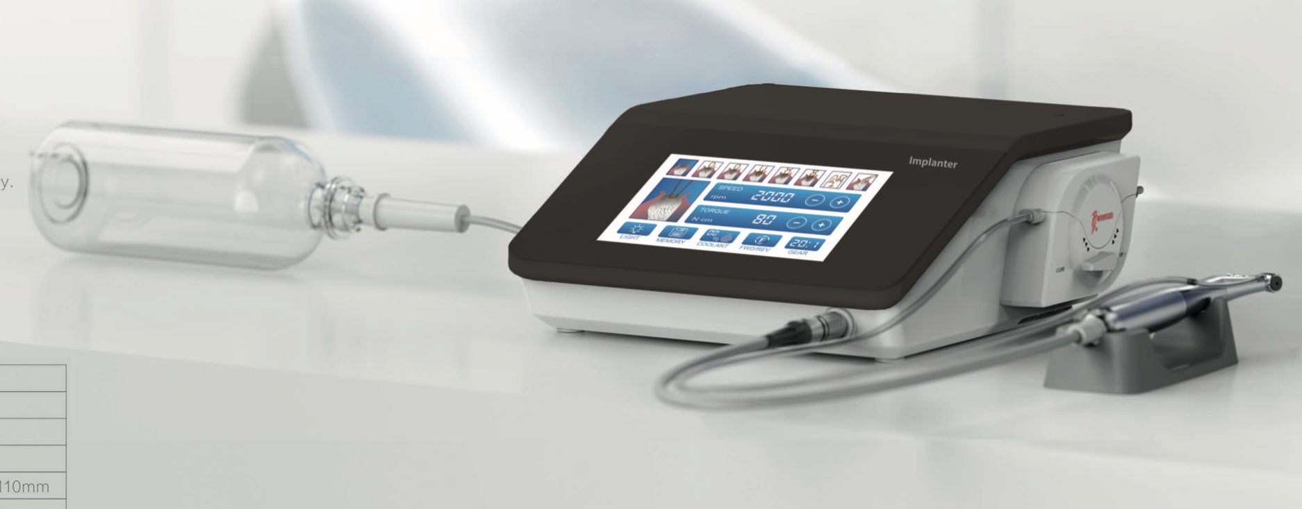 امکانات: هشت حالت برای گزینه. دارای تمامی سیستم های ایمپلنت صفحه نمایش لمسی رنگی و سطح شیشه ای تجربه عملکرد بهتری را برای شما به ارمغان می آورد کنترل دقیق گشتاور و نمایش زمان واقعی ایمنی جراحی را تضمین می کند پدال پا چند منظوره انعطاف پذیر منبع نور LED پمپ پریستالتیک بی صدا